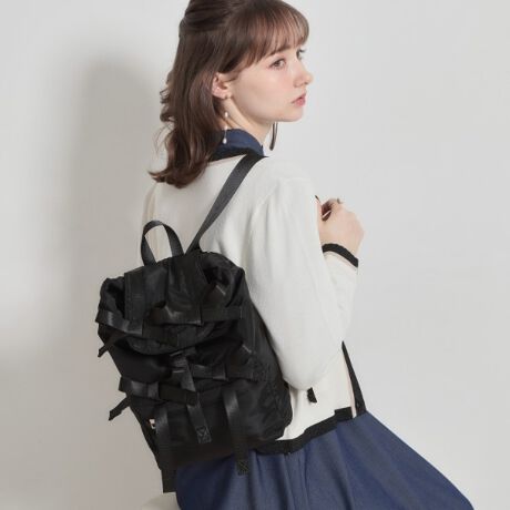 複数のリボンが存在感たっぷりのバックパックのミニサイズ。