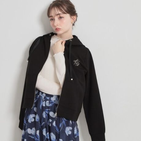 左胸にリボンとクチュールブローチのCBのロゴ刺?入りのデザインパーカー。