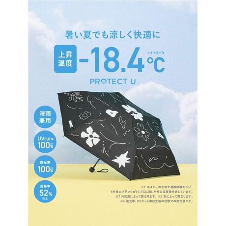 UVカット率100%※4、遮光率100%※4、遮熱率52%以上の高スペックPROTECT Uブランド素材でお作りした晴雨兼用折り畳み傘です。