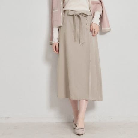 サイドタックプリーツデザインを入れた、ラップ風キレイ目ナロースカート