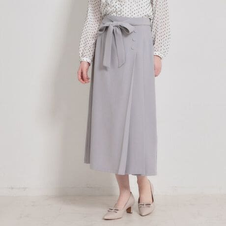 サイドタックプリーツデザインを入れた、ラップ風キレイ目ナロースカート