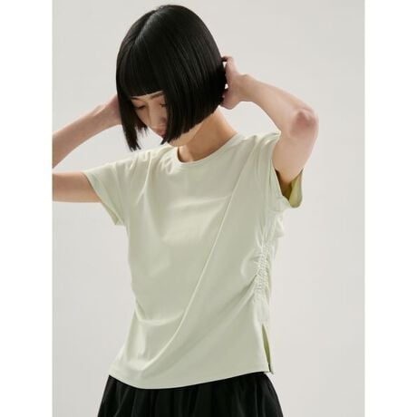 両脇のギャザーディテールによって、ウエスト周りがナチュラルに美しく見えます。