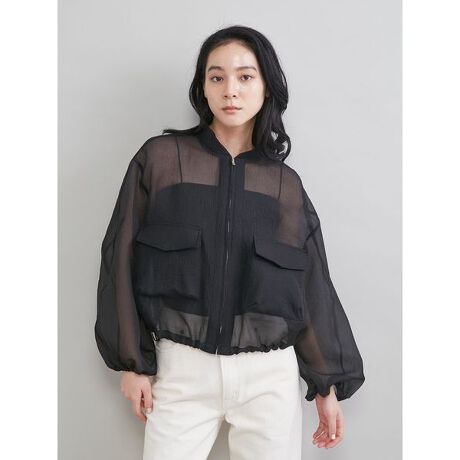 <b>【ウォッシャブル】【透け感が楽しめるブルゾンは、レイヤードに大活躍。ドロストの裾でふんわりシルエットに】</b>