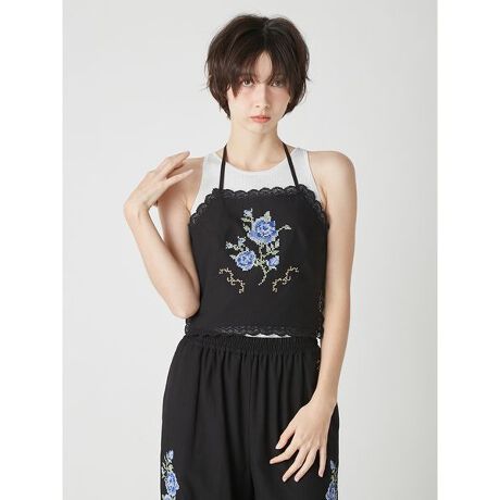 フラワークロスステッチホルターキャミビスチェ