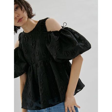 袖や裾にかけて柔らかなボリュームを持たせたデザインで、空気を含むような軽やかさと、品のある華やぎを両立。一枚で主役になる存在感のブラウスです。
