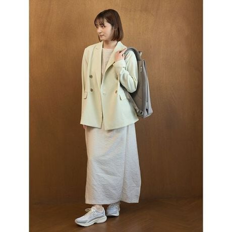 インナーにはタンクトップや強撚カットソー等薄手のカットソーとの合わせがオススメ。