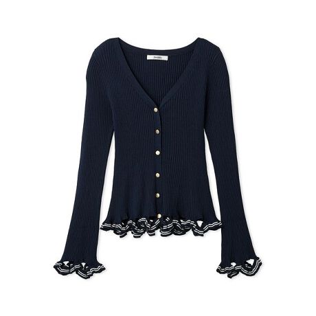 <b>【スカラップ風フリルが新鮮なリブニットカーディガン】</b>