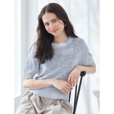 <b>【味のあるミックスヤーンを、モダンなシルエットに編み立てた半袖ニット。さらりとした肌触りが心地よい!】</b>