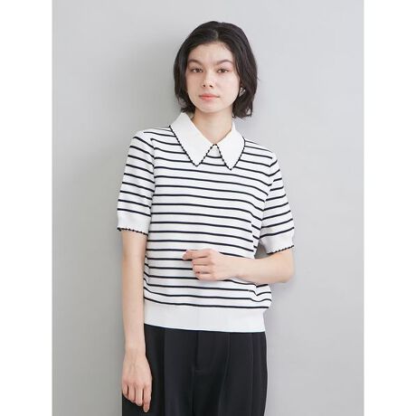 『Mila Owen』で大人気のポロ襟ニットが、春の雰囲気を感じるクリアな素材感で登場。