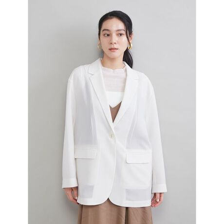 透け感のある織り地は、さらりとしていて上品な印象。軽さとハリがあるので、ジャケットらしいきれいめな印象をキープできます。
