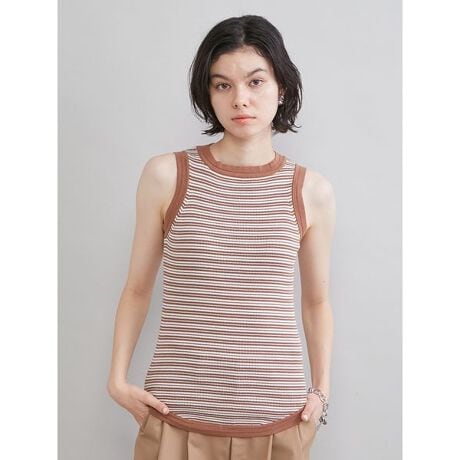 <b>【UVケア】【肩や胸元が綺麗に見えるラインを追究。レトロなボーダー柄が大人可愛い、リブニットのアメスリタンク】</b>