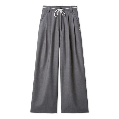 ゆったりとしたシルエットがこなれ感を引き立てる2タックワイドパンツ。ウエストの縄ひもベルトは結んだり垂らしたりとアレンジが楽しめ、着こなしのアクセントに。左ポケット口にはさりげない星型スタッズをあしらい、遊び心をプラスしました。コンパクトなトップスとのバランスはもちろん、フェミニンなブラウスとのテイストMIXスタイルもおすすめです。