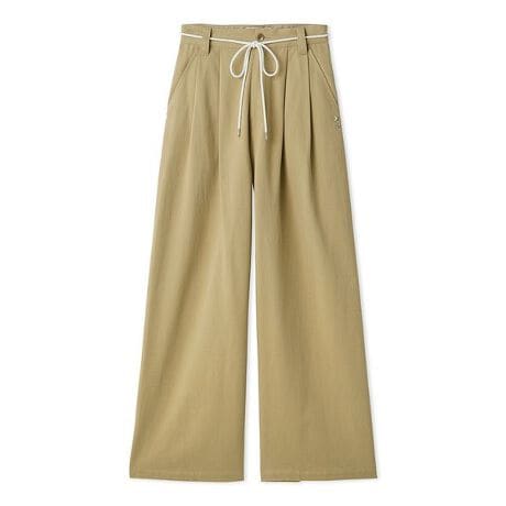 ゆったりとしたシルエットがこなれ感を引き立てる2タックワイドパンツ。ウエストの縄ひもベルトは結んだり垂らしたりとアレンジが楽しめ、着こなしのアクセントに。左ポケット口にはさりげない星型スタッズをあしらい、遊び心をプラスしました。コンパクトなトップスとのバランスはもちろん、フェミニンなブラウスとのテイストMIXスタイルもおすすめです。