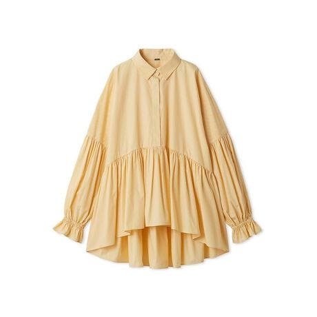 <b>【裾や袖口のたっぷりギャザーが華やか。シャツ襟でキレイめにも決まる、安心のチュニック丈ブラウス】</b>