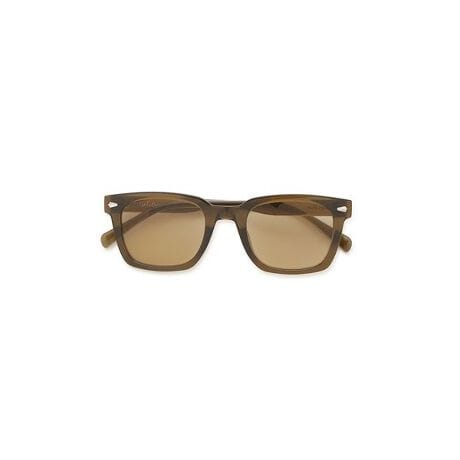 透け感のあるクリアフレームが、薄めのカラーレンズとマッチして、お洒落な印象のサングラスです。