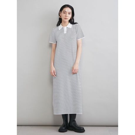<b>【ニットで上品に編み立てた、シルエットがきれいなストレートワンピ。トレンドのポロ襟で旬の着こなしに】</b>