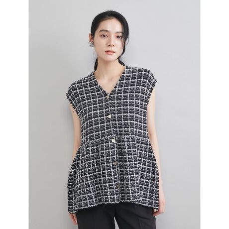 ペプラムデザインVネックツィードベスト