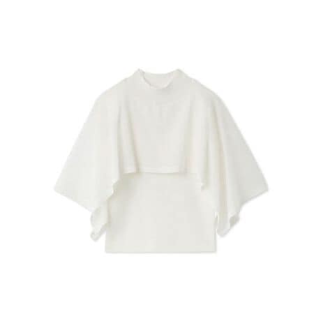 ノースリーブのすっきりとしたハイネックニットプルオーバーに、ケープデザインをドッキングさせた、エレガントなケープニットプルオーバーがお目見え。程よい身幅ですっきりとしています。空気をはらんでふんわりと揺れるケープデザインが気になる肩や二の腕周りをしっかりとカバー。身頃は透け感のないニット生地ですが、ケープ部分はほんのりと透け感を加えて軽やかにデザインしました。カジュアルなデニムに合わせたり、キレイめなスカートに合わせたりさまざまなシーンでご着用いただけます。