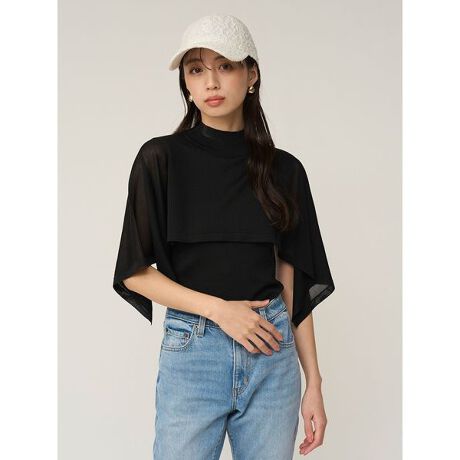 ノースリーブのすっきりとしたハイネックニットプルオーバーに、ケープデザインをドッキングさせた、エレガントなケープニットプルオーバーがお目見え。程よい身幅ですっきりとしています。空気をはらんでふんわりと揺れるケープデザインが気になる肩や二の腕周りをしっかりとカバー。身頃は透け感のないニット生地ですが、ケープ部分はほんのりと透け感を加えて軽やかにデザインしました。カジュアルなデニムに合わせたり、キレイめなスカートに合わせたりさまざまなシーンでご着用いただけます。