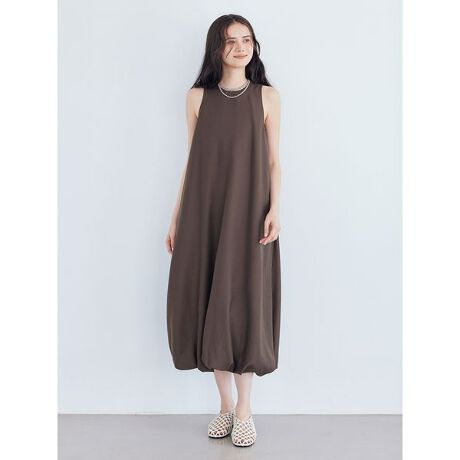 ふっくらとボリュームをもたせたバルーンシルエットが女性らしいワンピース。トレンドのアメリカンスリーブが可愛さを引き算して、ヘルシーに見せてくれます。