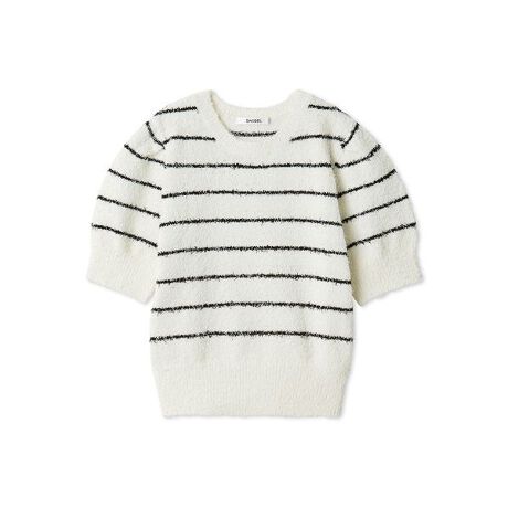 ふわふわとした糸で仕上げた、半袖ニットプルオーバーです。
