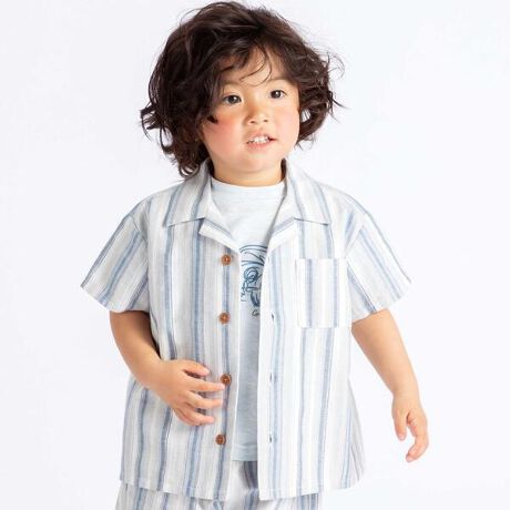 ナチュラルな風合いのマルチストライプ生地が爽やかな半袖シャツ。