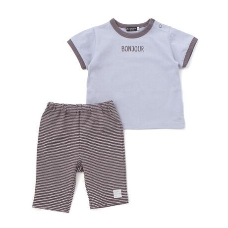 シンプルなデザインでユニセックスで着られるセットアイテム。