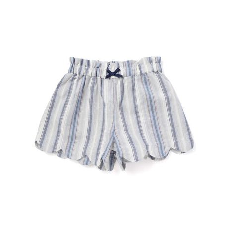 ナチュラルな風合いのマルチストライプ生地のキュロットパンツ。
