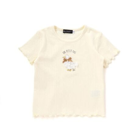ふわふわのシフォンフリルにくるまれたアヒルのプリントがかわいいTシャツ。
