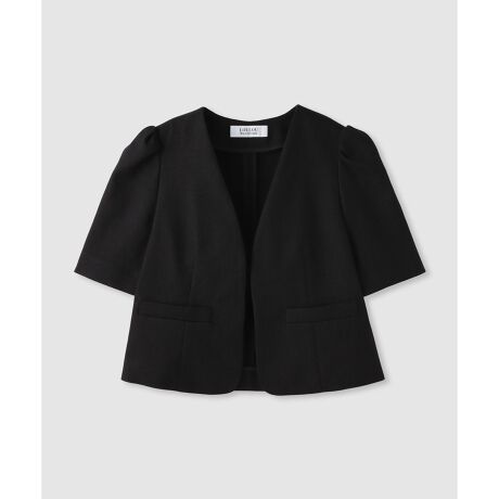 ご好評いただいている定番の半袖ジャケット。コンパクトな着丈でバランスが取りやすく、ワンピースやハイウエストボトムとも好相性。