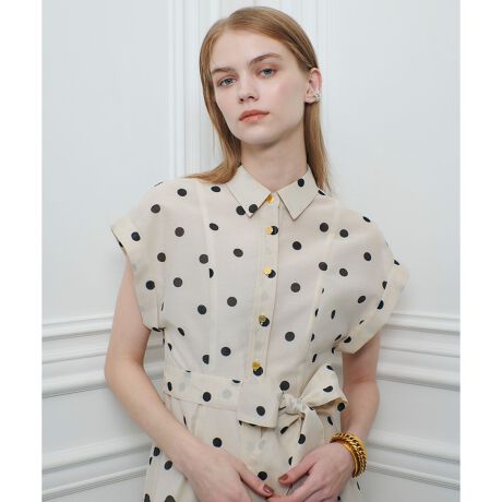 ほんのり透け感のあるオーガンジーにドットをプリントした、軽やかな素材を使用。
