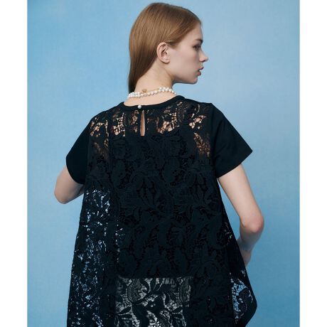 毎年大人気のレースドッキングTシャツ。今年は着丈を長くし、広幅の打ち込みのある贅沢なレースを使用。レースのスカラップ柄は2種類あり選んでいただけます。ケミカルレースの高級感とTシャツの気軽さが楽しめる真夏にぴったりな1枚です。