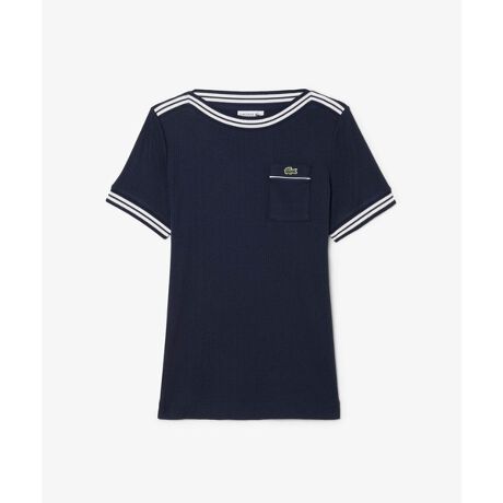 [型番:TF9890-10]フランスメイドの品格が映える、ボートネックリブTシャツ・オーガニックコットンとモダールをブレンドした薄手のレース調リブニット素材・奥行きを演出するシャドーストライプのような細かな編み柄・ボディに沿うエレガントなスリムフィットシルエット・フェミニンなボートネックに、スポーティーさを残す襟・袖のボーダーリブニット・フランスメイドならではの上質な仕立てRegular Fit
