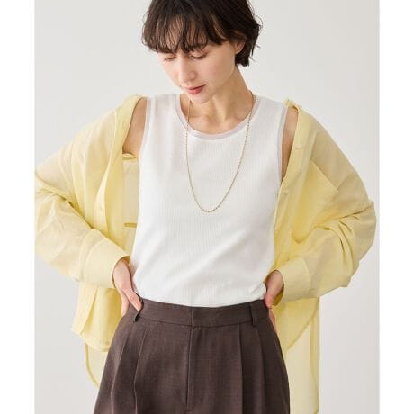・シアー素材をドッキングしたデザインタンクトップ。