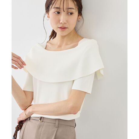 ・ケープ風デザイン×ハーフスリーブで、1枚で映える立体シルエットを演出。