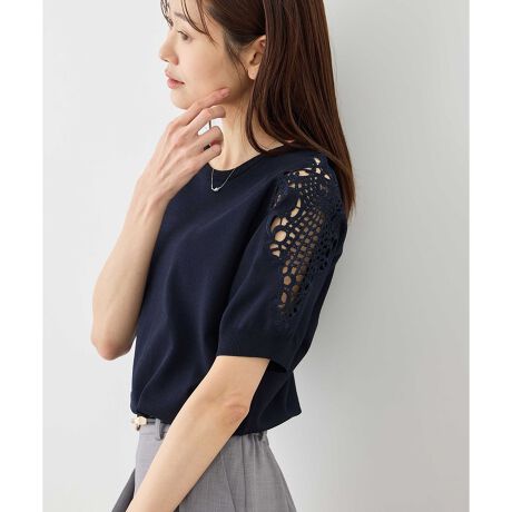 ・スカート合わせでフェミニンスタイル、一枚で主役になる袖レースデザイン。