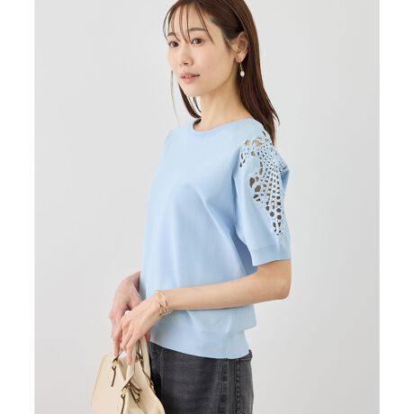 ・ラグランスリーブ肩部分にレース刺繍を施し、涼やかな印象に。