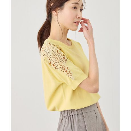 ・ラグランスリーブ肩部分にレース刺繍を施し、涼やかな印象に。