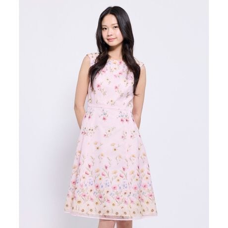 淡いカラーの生地に繊細な小花柄が散りばめられた、上品でフェミニンなデザインが特徴の刺繍ドレス。ウエストの切り替えで、上身はすっきりと、スカート部分はふんわりと広がるフィット&フレアなシルエットに、女性らしいラインを美しく引き立てます。裾に向かうほど花柄が密になり、まるでグラデーションのように華やかに。清楚でありながら華やかさも感じられる春夏のお出かけや特別なシーンにぴったりです。