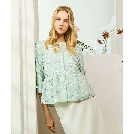 繊細なレースが上品な存在感を放つ、大人フェミニンなブラウス。