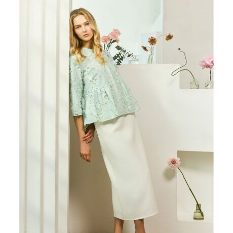 程よく落ち感のある素材が、動くたびに女性らしい印象を演出。