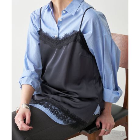 レイヤードで旬なバランスに仕上がる、サテンレースキャミソール。