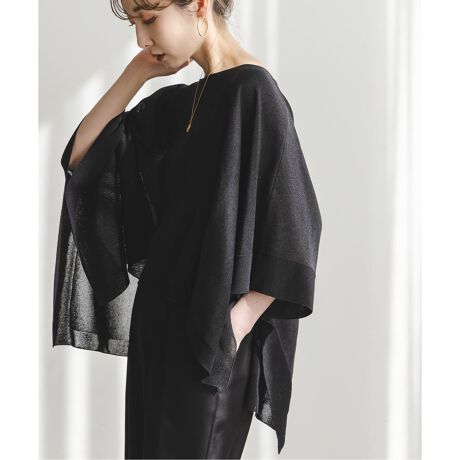 透け感とシャリ感のある素材が涼やかな印象のサマーニットケープ。