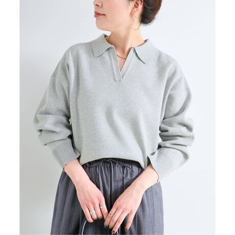 程良い厚みがありながら軽くて柔らかい着心地で、程よくあいた首元が抜け感をプラスしてくれます。幅広いボトムスと相性が良く、カットソーとレイヤードしたスタイルもおすすめです。