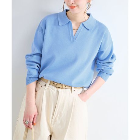 程良い厚みがありながら軽くて柔らかい着心地で、程よくあいた首元が抜け感をプラスしてくれます。幅広いボトムスと相性が良く、カットソーとレイヤードしたスタイルもおすすめです。