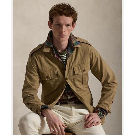 質感のあるコットン素材とコロゾボタンでユーティリティ風のシルエットを一新したオーバーシャツ・クラシックフィット:胸、ウエスト、袖にかけてゆったりとしたカット、低いアームホール・ストレートカラー / ボタン付き前立て / コロゾボタン・長袖、ボタン付きバレルカフス / ボタン付きショルダーエポーレット・胸にカーゴポケット2つ / フロントウエストにフラップポケット2つ・ウエスト背面にベルトのディテール。ストレートな裾・モデル身長185cm、着用サイズM※注意:柄の配置は、商品によって異なります。 【素材】・本体:綿 100%【生産国】ベトナム