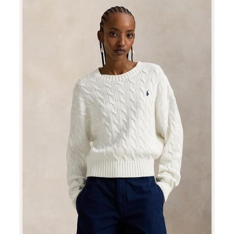 蒸れにくい太いゲージのコットン糸を使用したクルーネックセーター。オールシーズン活躍する汎用性の高い重ね着アイテム。アイコニックなケーブルニット構造で仕立てたゆったりとしたシルエットと、シグネチャーのポニーの緻密な刺繍が特徴・リラックスフィット / 腰丈・リブニットのクルーネック・長袖、リブニットのカフス / ドロップショルダー・リブニットの裾・左胸にシグネチャーのポニー刺繍・モデル身長178cm、着用サイズS 【素材】・本体:綿 100% 装飾部分を除く【生産国】中国