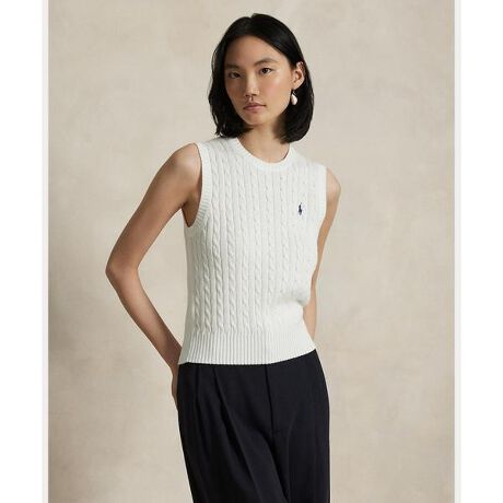ケーブルニット構造が特徴的なクルーネックのセーターベスト。コットンを使用し、胸にシグネチャーのポニー刺繍のアクセントをあしらったアイテム。・ストレート、わずかにスリムフィット / 腰丈・リブニットのクルーネック / ノースリーブのシルエット、リブニットのアームバンド / ストレートなスリット入りのリブニットの裾・左胸にシグネチャーのポニー刺繍・Ralph Laurenのコットン製品を選ぶことで、環境の保護と修復に努めながら、コットン業界が今後も成長を続けられるように支援するBetter Cotton(TM)ミッションへのRalph Laurenの取り組みをサポートすることになります・本商品は物質収支方式に則って材料を調達しているため、全ての製品にBetter Cotton(TM)が含まれない可能性があります。・モデル身長178cm、着用サイズS※商品の色味は、光のあたり具合など諸条件により色感が多少異なって見える場合がございますので予めご了承下さい。 【素材】・本体:綿 100% 装飾部分を除く【生産国】中国