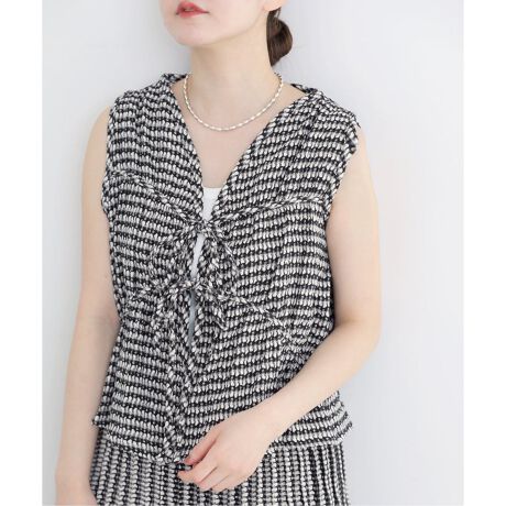 同素材のスカートと合わせれば、上品なセットアップコーデが完成します。