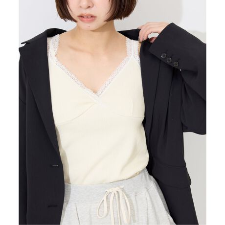 レースは肩ストラップから胸元まで繊細にあしらいました。